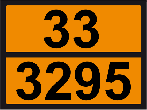 Orangefarbene Tafel mit Gefahrnummer 33 und UN 3295